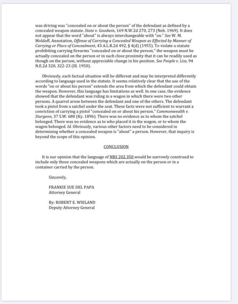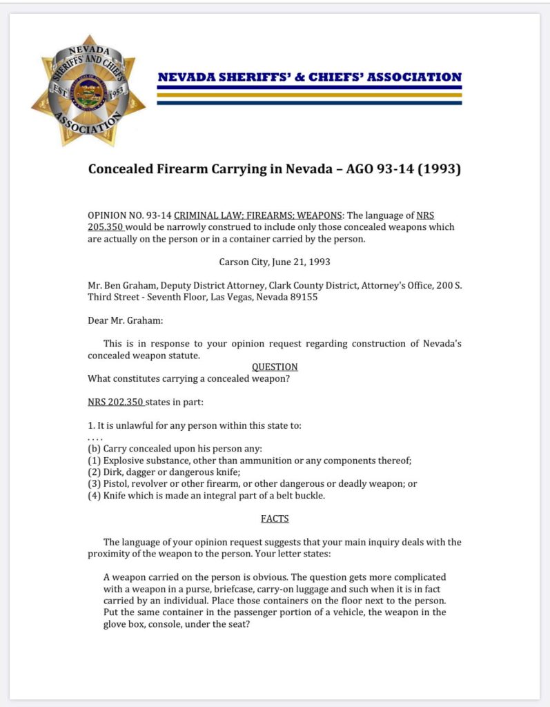 Attorney General Opinion Letter on NevadaCarry.org